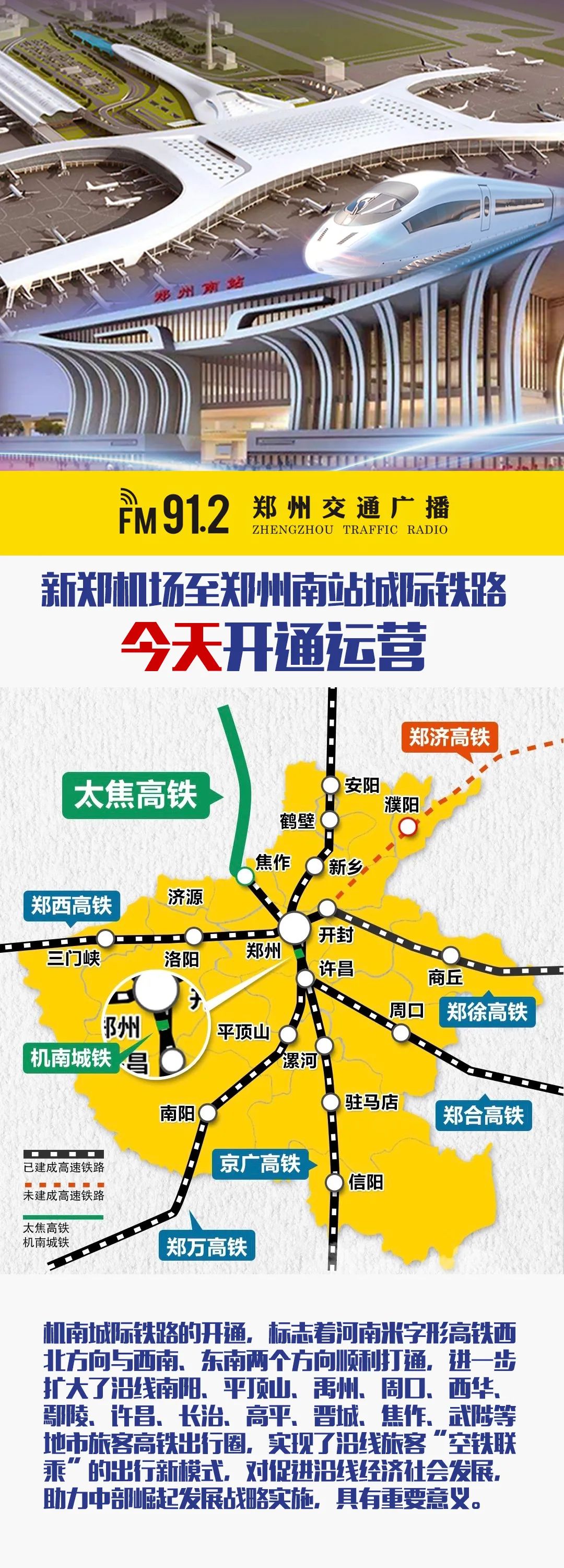 今日,新建新郑机场至郑州南站城际铁路(简称“机南城际铁路”)