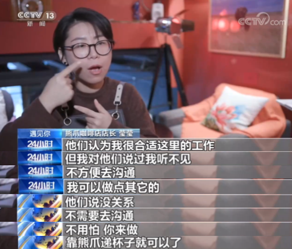 熊爪咖啡店创始人 王海青:网友质疑我们是不是噱头,为什么没有工作人员在现场?这些我们当时就说出了初衷是,因为即使短暂的时候有志愿者帮忙,但是长期我们还是希望把店交还给聋哑人咖啡师,让他们可以跟客户也是无障碍的,通过小程序去交流,然后制作咖啡给大家。