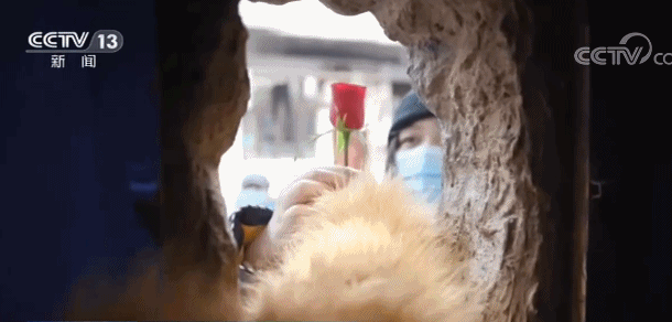 上午10时,来等熊爪的人已经排起长队。很多人都是特意过来的,想和熊爪摸摸头、握握手。排在第一位的,还有一份惊喜的礼物。