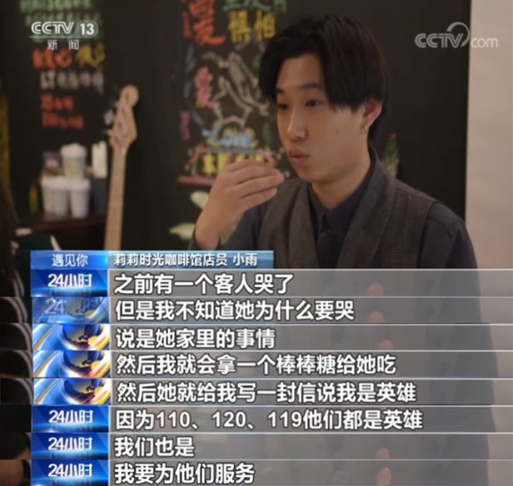 顾客:好几个网红的店员都很开心很快乐,反而我觉得我们平时不快乐的东西多一点。实际上他们感动给我们更多,不是说不需要我们的帮助,而是这种不一样的互动,让我们思考自己更多,思考现在的生活更多。