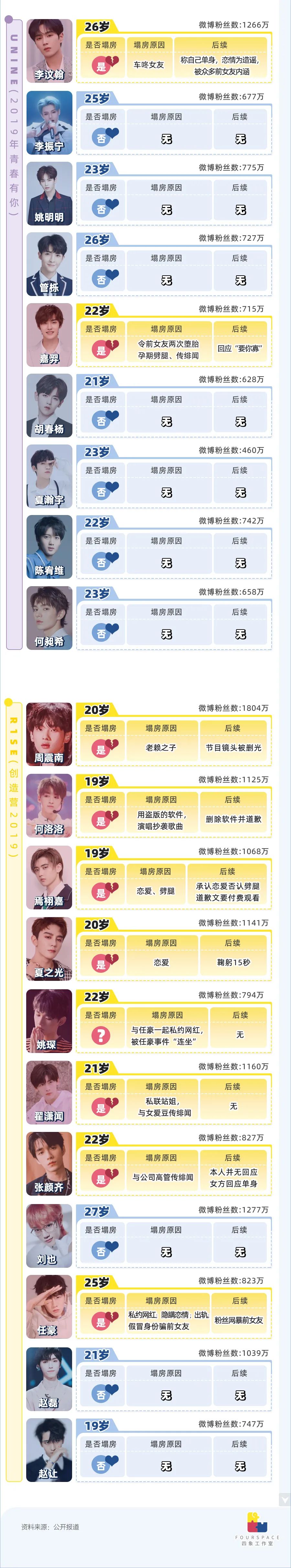 然而,负责生产的资本,似乎不会为消费者保证售后服务。空有皮囊和人设的爱豆们,塌起房来,那叫一个惨烈。四象整理了男团成员塌房图鉴,包括2018年偶像练习生,2019年以团之名、青春有你、创造营四个选秀节目打造的男团。