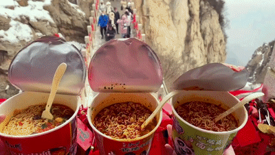 “远赴人间惊鸿宴,老君山上吃泡面”