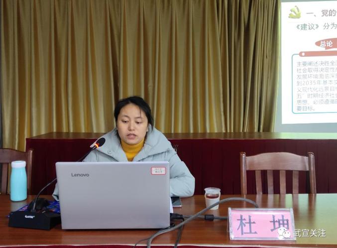 杜坤先后从“党的十九届五中全会概况;深刻认识我国进入新发展阶段的重大意义、有利条件和重要特征;准确把握二〇三五年远景目标和‘十四五’时期我国经济社会发展的指导方针、主要目标、重点任务;牢牢把握构建新发展格局的战略构想和重要着力点;坚持党的全面领导,动员各方面力量为实现‘十四五’规划和二〇三五年远景目标”等五个方面进行了系统深刻的阐述了全会精神。