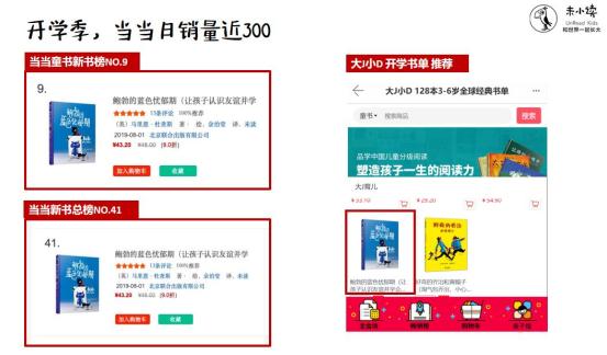 一下子冲到榜单前列刚开始觉得这本书大家都会喜欢(因为第一本《鲍勃是个艺术家》获了很多奖),于是拼命寄书,头一个月寄的书比卖的还多。就在心凉凉之时,8月底的某天,销售日报上突然卖出了300多本!查询后才发现是大J小D放进了她的开学季书单。此后,这本书的市场就打开了。
