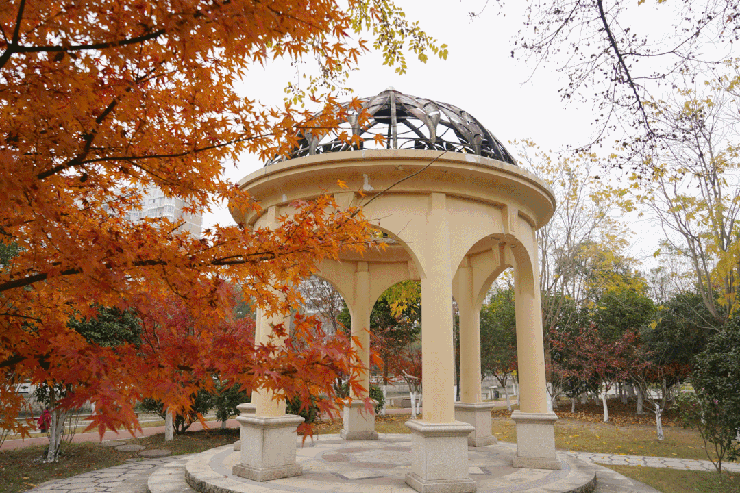 深秋初冬的暖阳下绿地内景观亭别有一番雅致
