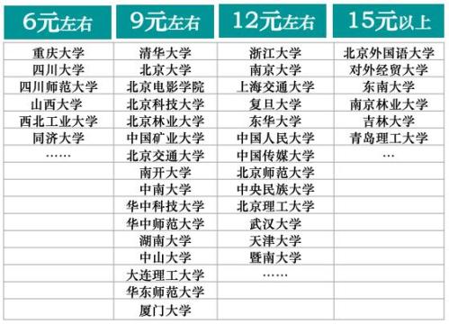 不同学校食堂菜价差异较大,直接决定了大家的食物开支水平。我在微博问了一圈,发现高校食堂菜价大概有4个价位: