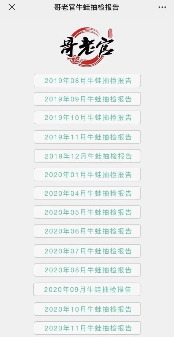 此外,调查中,上海哥老官餐饮管理有限公司还出具了其委托第三方检测公司对牛蛙的检测报告,最近一批是2020年11月17日送检的牛蛙,检测结果显示为合格。