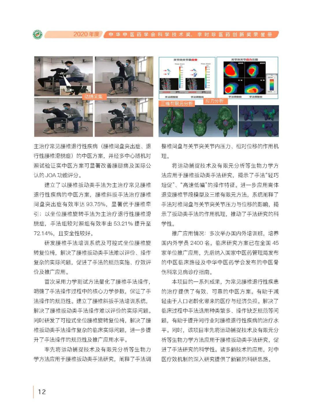 2020年度中华中医药学会科学技术奖、李时珍医药创新奖颁奖仪式于12月5日在中华中医药学会第七次全国会员代表大会上隆重举行,有关领导、院士专家为获奖代表颁奖。经专家评审、公示、常务理事会审议确认,2020年度中华中医药学会科学技术奖(含子奖项)共授奖131项,李时珍医药创新奖授奖3人。为更好的展示获奖项目内容和获奖人物风采,发挥典型示范作用,激励带动广大中医药科技工作者,遵循规律、传承精华、守正创新,为推动中医药事业和产业高质量发展再立新功,中华中医药学会官微近期将连续推出2020年度中华中医药学会科学技术奖、李时珍医药创新奖部分获奖项目和获奖人物介绍。