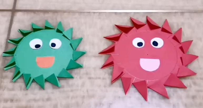 准备两张圆形彩纸如上图所示画好线条