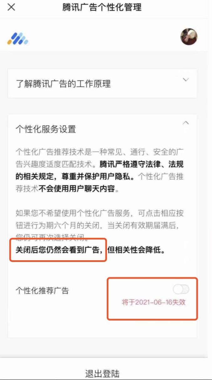有人体验了关闭微信个性化推荐广告操作