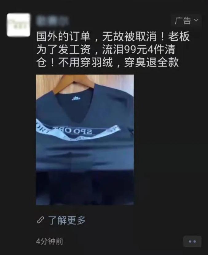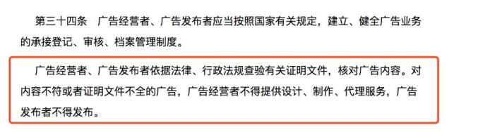 部分微信推送朋友圈广告截图 上海市消保委供图《广告法》第三十四条第二款规定:“广告经营者、广告发布者依据法律、行政法规查验有关证明文件,核对广告内容。对内容不符或者证明文件不全的广告,广告经营者不得提供设计、制作、代理服务,广告发布者不得发布。”