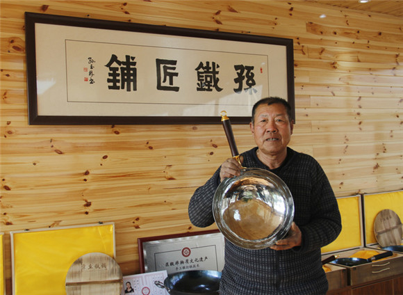 对非物质文化遗产传承人孙廷保来说,用五辈祖传的古法打铁手艺锻造出来的铁锅,才是“章丘铁锅”真正的代表。“我们家五辈祖传打铁,我的父亲、爷爷、老爷爷都是铁匠,我从12岁就开始跟着他们拉风箱。战争时期,我父亲和大爷还做过枪,太平了就做农具活儿。我从学校回来也跟着学打铁。”