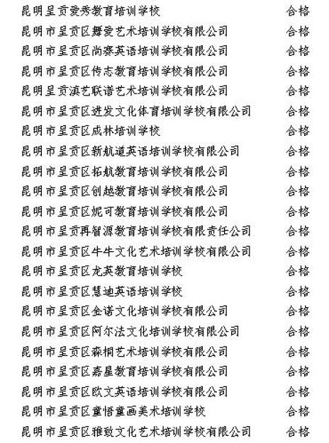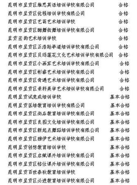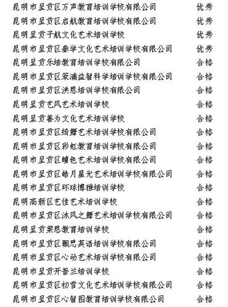 西山区民办教育机构年检结果(全部)