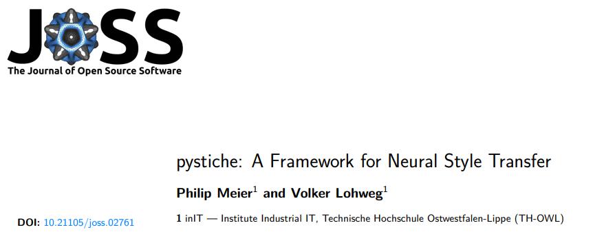 论文地址:https://joss.theoj.org/papers/10.21105/joss.02761项目地址:https://github.com/pmeier/pystiche