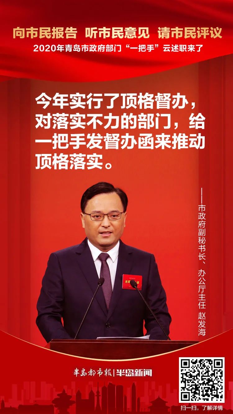 12月19日上午,2020年青岛市政府部门向市民报告、听市民意见、请市民评议活动(简称“三民”活动)公开云述职报告会正式启动,市政府38个部门主要负责人首次向市民云述职,接受市民的评议。青岛市委副书记、代市长赵豪志出席并致辞。