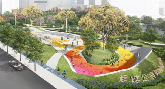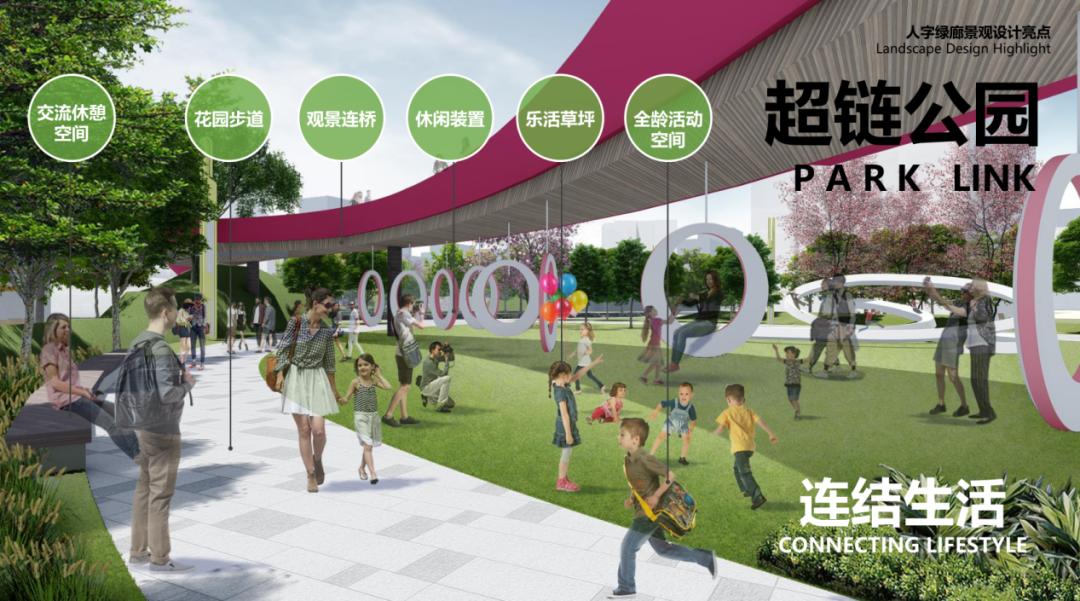 ▌超链公园 概念示意图方案以超链公园为主题,规划“最成都”十大景区:超链结公园步道、动感广场、天府果园、森林餐桌、野趣漫步、生态绿洲、光影走廊、无极限乐环、花影草坪、康体乐园。