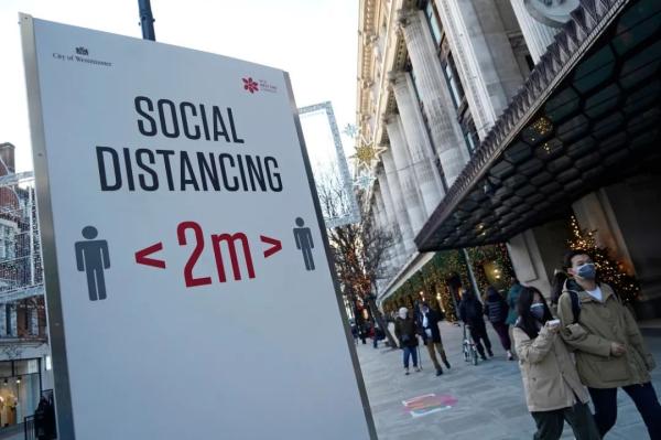 12月20日,在英国伦敦,行人走过牛津街上提醒人们保持社交距离的标牌。新华社 图23处突变!变异新冠病毒9月已现身英国
