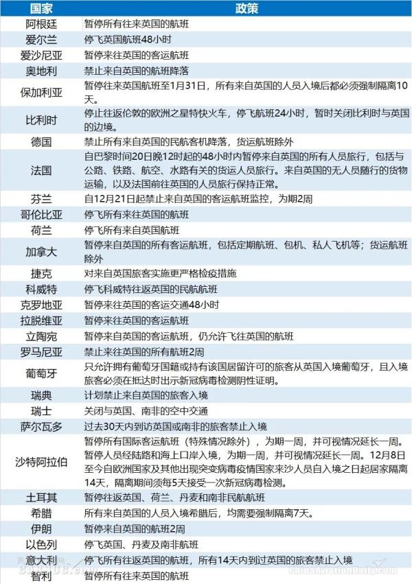 图:各国针对英国的出行政策 来源:民航资源网这些国家包括比利时、加拿大、德国、爱尔兰、意大利、罗马尼亚、俄罗斯、瑞士和印度等。