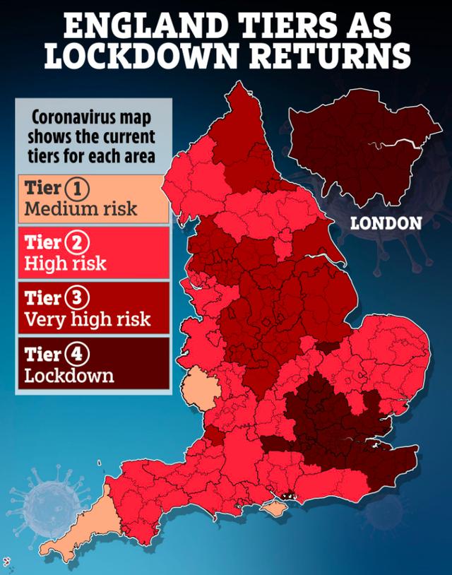 英国防疫等级示意图,颜色深最深区域为四级封锁区域,以伦敦和周边城市为主不过,病毒载量高意味着患者的传染性更高,社交距离等防控举措更为重要。至于当前的新冠疫苗是否对该变种有效,现在没有确切答案,还需要进一步研究。