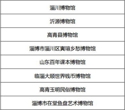 淄川博物馆、沂源博物馆、高青县博物馆、淄博市淄川区寅瑄乡愁博物馆、山东百年课本博物馆、临淄大顺世界钱币博物馆、高青玉明民俗博物馆、淄博市在堂鱼盘艺术博物馆等8家博物馆被评定为国家三级博物馆。