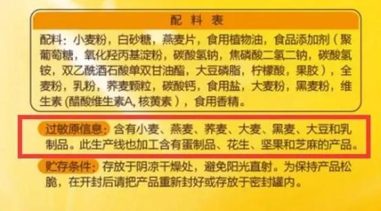这个规定其实对于容易过敏的人来说很友好。这要求食品必须在包装袋上标注原料,以及接触到的可能会导致过敏的原材料。