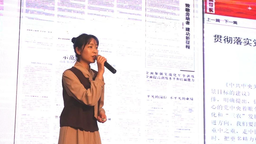 刘雨婷讲述了时代楷模黄文秀和张桂梅奋战全面小康和现代化建设的故事,呼吁新时代青年人应勇担时代责任,信心百倍地迎接基本实现现代化的2035年。