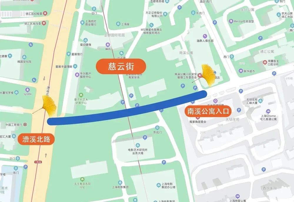 慈云街位于徐汇区中部,东起汇南街105弄,西至漕溪北路。路长130米,宽1.5米。道路建于1910年。徐家汇天主教堂辟筑,因西端有一座慈云桥,遂以桥名命名。中段南侧为上海电影制片厂围墙。落叶不扫道