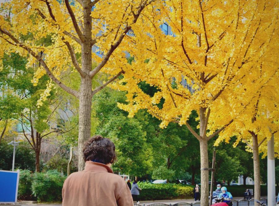 落英缤纷的漫天黄色路过的人纷纷驻足留影