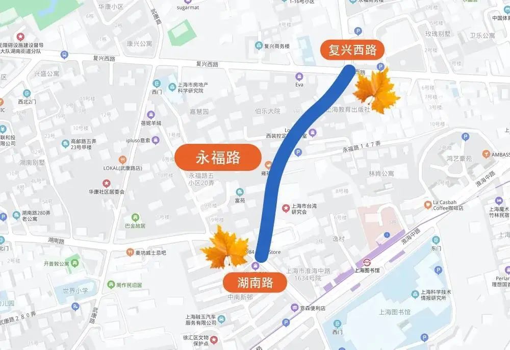 永福路位于上海市徐汇区北部。北起五原路,南至湖南路。长495米,宽14.0~16.0米,车行道宽9.0~10.0米。1930年筑,后以广西永福改今名。落叶不扫道