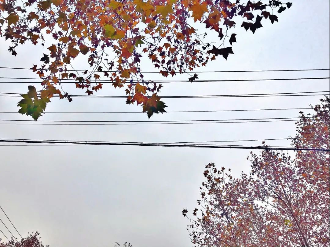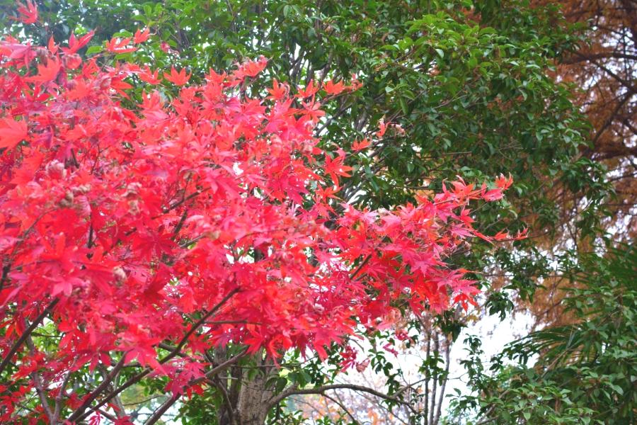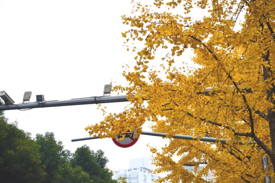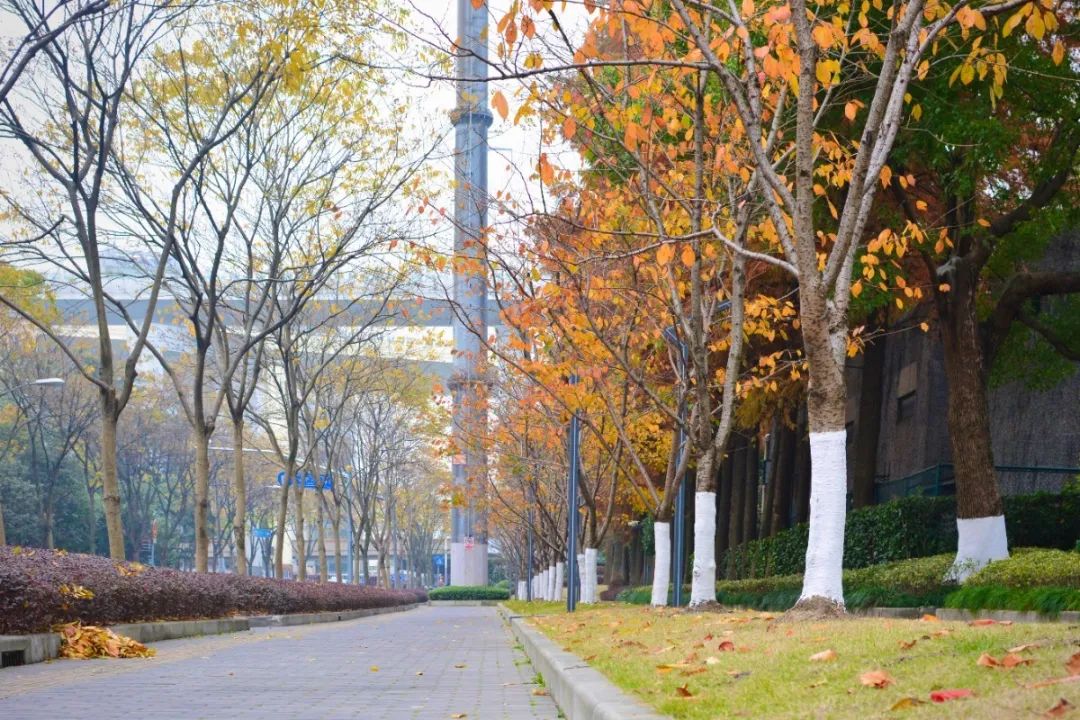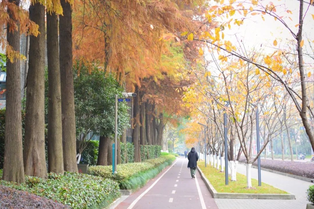 桂江路两侧红枫、麻栎、银杏和杉树也穿上了新衣