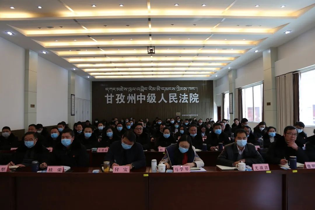 宣讲会后,赓即召开了甘孜法院工作汇报会。会上,史红平副院长肯定了甘孜法院在坚持党对政法工作的绝对领导,全面做深“六个实质化”工作,立足审判执行,在维护涉藏州县社会大局稳定、经济发展、民生建设等方面取得的成绩。他强调,下一步,甘孜两级法院要提高政治站位,始终坚持党对政法工作的绝对领导。要结合甘孜实际,扎实推动“六个实质化”走实走深。要切实加强队伍建设,着力建设一支党和人民信得过、靠得住、能放心的法院队伍。甘孜中院党组成员、专委、审监庭、办公室负责人参加会议。