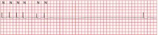 第四天的中午,张阿姨正在吃饭,一阵心慌又出现了,张阿姨有些不舒服,让护士通知了床位医生。医生一看心电图,原来张阿姨发房颤了,心慌的原因算是找到了,晕厥的原因也大概估计到了。下午的时候,张阿姨坐在病床上准备拿起手机棉被和老伴聊天,第三次晕厥来了,张阿姨只觉眼前一片发黑,人又软软的倒在了床榻上,边上的心电监护警报响起:心率为0,心电图只看见一条直线,7秒钟以后才出现的正常的心跳。