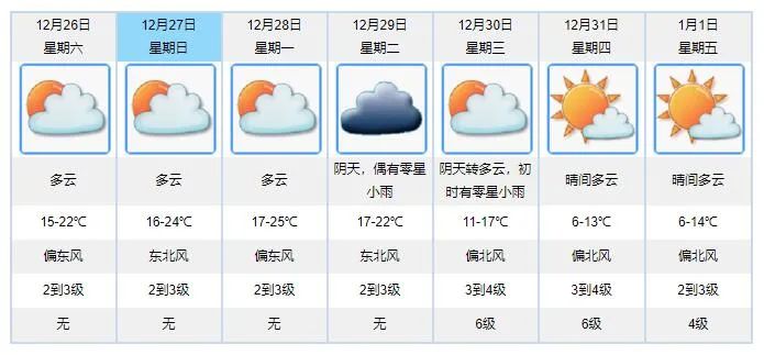 今天,多云到晴,气温15到21度;早晚寒凉,注意适时添减衣物。预计26至28日多云为主,气温逐日缓升,体感清凉舒适;29日云量增多,偶有弱降水;展望30日起,受新一股冷空气影响,气温骤降,届时风力加大,天气再次转冷。近期森林火险等级高,注意用火用电安全。