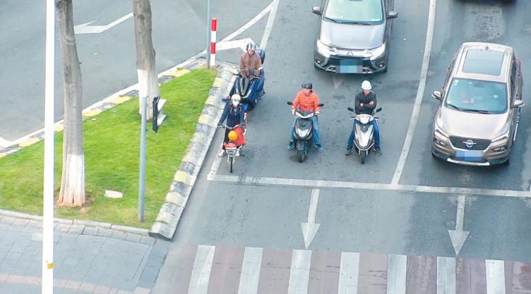 △无人机捕捉到违规行驶非机动车,将对其发出提醒。(图为无人机拍摄)国内国际