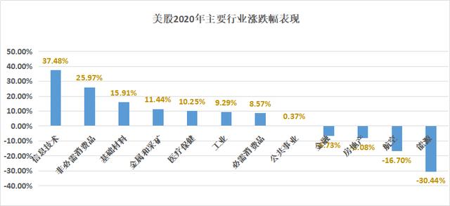 回首2020年美股行情,新冠疫情是贯彻全年的市场主轴,这也让美国不少实体经济受到较大影响。同时在其影响下,"居家"概念相关科技股乘风而上,科技股意外成为今年美股的最大赢家。从标普各行业指数表现来看,科技行业、非必需消费品和基础材料板块成为2020年最大赢家,而能源行业和航空行业则经历了惨淡的一年。