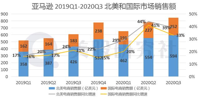 受疫情利好,亚马逊借助电商业务业绩增长明显。根据亚马逊今年发布的财报来看,Q1-Q3季度的营收分别为755亿美元、889亿美元、961亿美元。