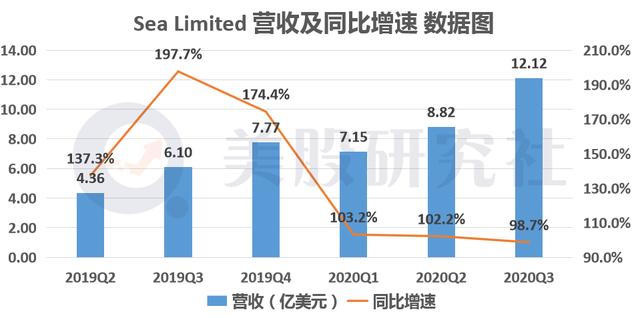 今年除了美国本土电商之外的互联公司同样表现不俗,拉丁美洲的MELI和STNE、东南亚的SE、非洲的JUMIA、中国的拼多多。以东南亚的SE来看,今年第三季度的GAAP总营收为12.12亿美元,同比增长98.7%。2019年第二季度至今,营收规模大致呈现扩大趋势。拼多多后生可畏,与阿里的年度活跃用户差距缩小到2500万,并实现首次季度盈利,资本市场也给了充分的肯定。