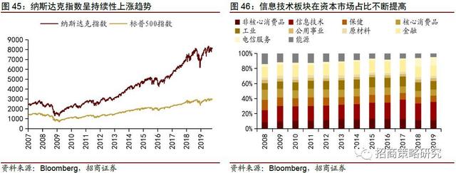 金融危机过后,自2009年开始,纳斯达克指数重启上升通道,由1550.7点上涨至8162.98点,涨幅达426.4%,领先于标普500增速水平。