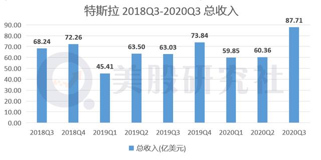 回顾特斯拉2020年的表现来看,有不少高光时刻。从业绩层面来看,Q1-Q3季度,特斯拉营收分别为59.85亿美元、60.36亿美元、87.71亿美元。在营收增长背后,主要从特斯拉交付车辆数量影响。今年前三个季度全球交付数量分别为88496辆、90891辆、139593辆。