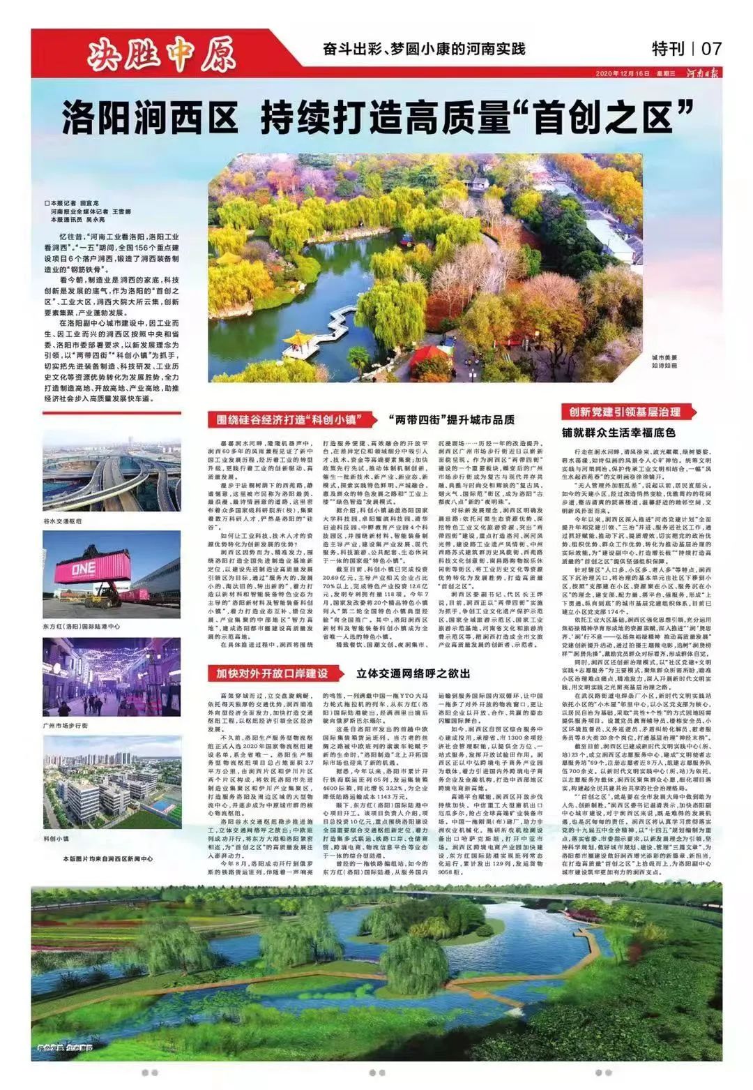 原标题:《决胜中原 | 涧西区:持续打造高质量“首创之区”》