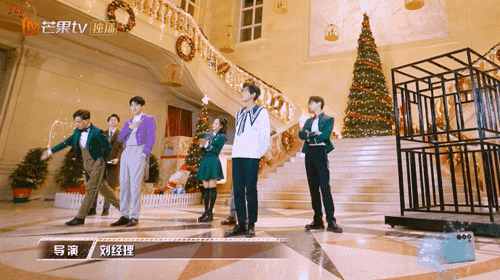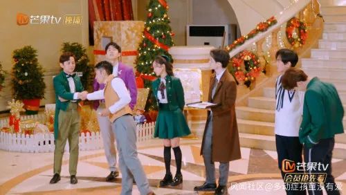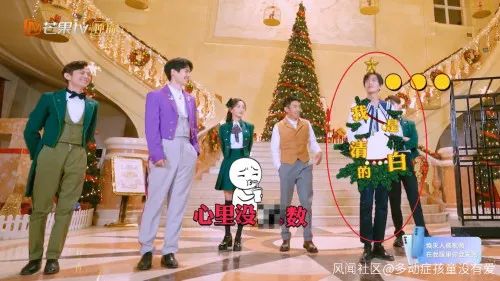 节目组后期给艺人搭配的小卡通是圣诞元素。