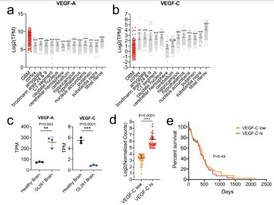 人类和小鼠GBM与VEGF-C表达谱的相关性。Nature. 2020Jan;577(7792):689-694. doi: 10.1038/s41586-019-1912-x.