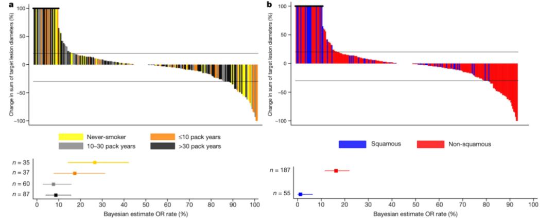 根据吸烟史和组织学表现,NLMT19个队列中目标病灶直径变化。Nature. 2020 Jul;583(7818):807-812. doi: 10.1038/s41586-020-2481-8.