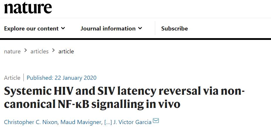 Systemic HIV and SIV latency reversal vianon-canonical NF-κB signalling in vivo. Nature, (), –. doi:10.1038/s41586-020-1951-3