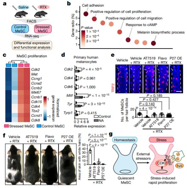 抑制MeSC异常增殖可防止压力诱导的头发变白