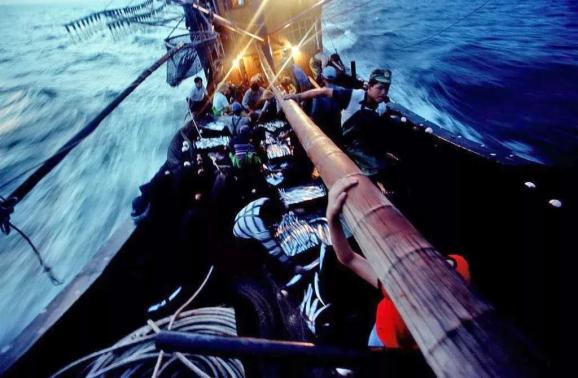 1999年7月10日,海南三亚, 琼三亚11034号船在风浪中。
