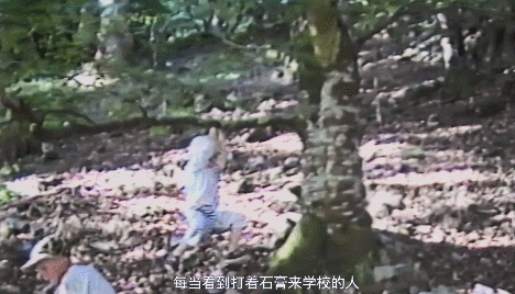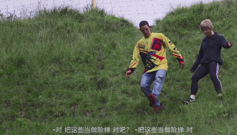而它身后是一群大小伙子连滚带爬跑下山坡。