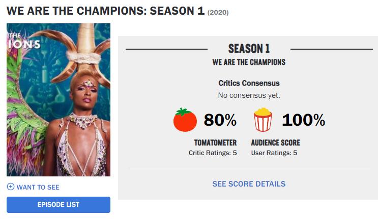 烂番茄80%的新鲜度,100%的观众好评。