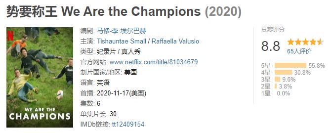 一共6集,单集30分钟,适合下饭。每集介绍的比赛还都不一样: