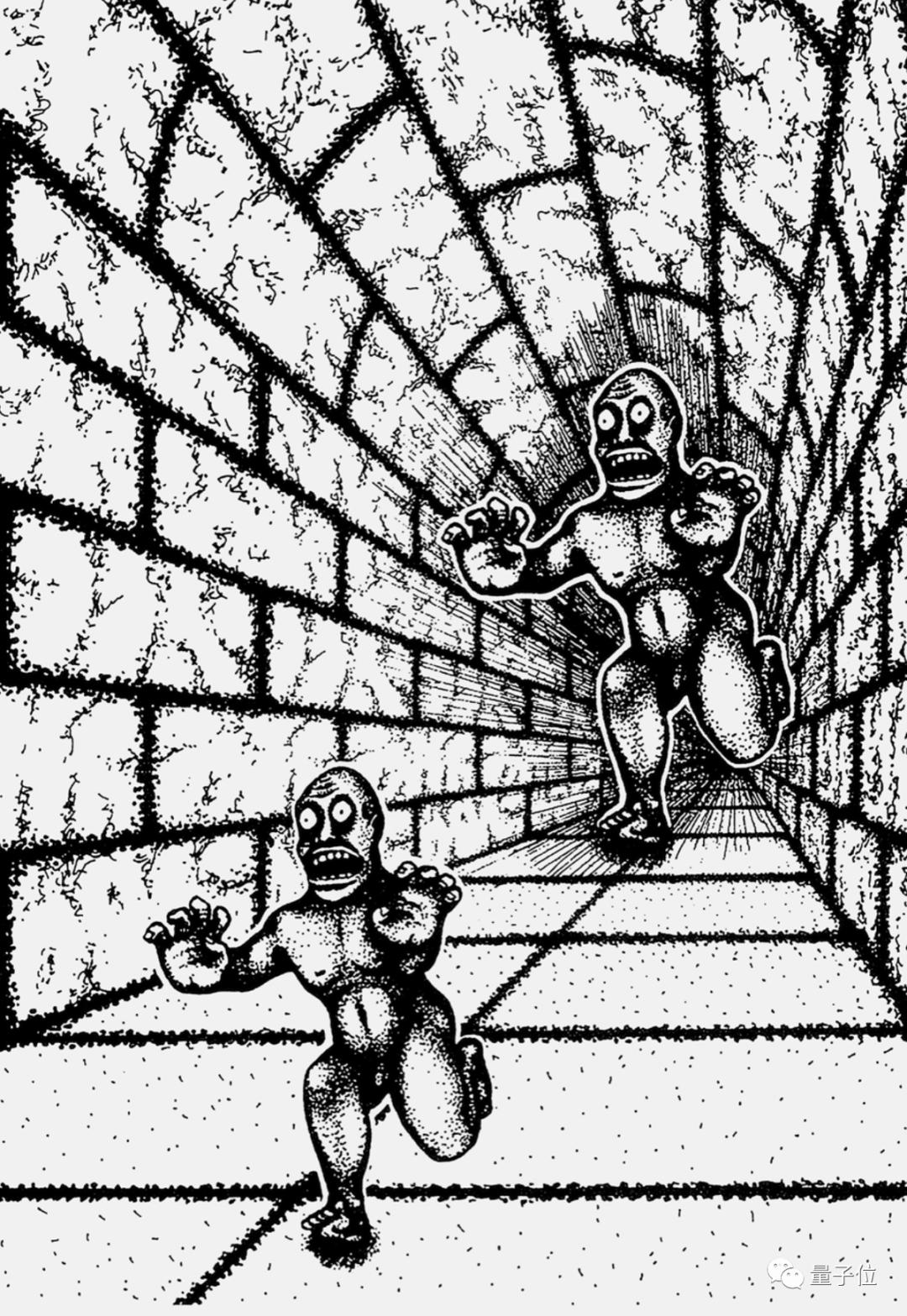 她以漫画《隧道里的怪物》为例。这是一部著名的视觉错觉作品,在一个有明显透视效果的隧道里画了两个生物。虽然两个实体大小完全一样,但一眼看去,二者大小悬殊。Choi指出,这幅插图在2017年出版的《理性之谜》一书中讨论过,作为大脑如何利用背景(context)理解图像的例子。